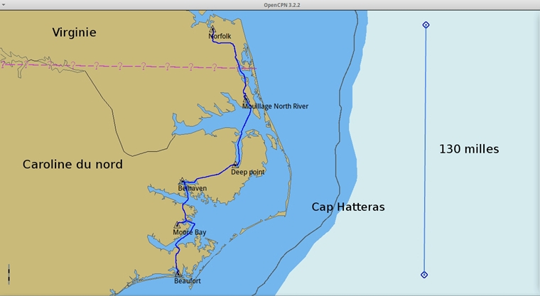 Grâce aux conseils d’autres navigateurs, nous avons franchi le Cap Hatteras par les canaux (IntraCostal Waterways), ce que nous n’avons pas regretté.