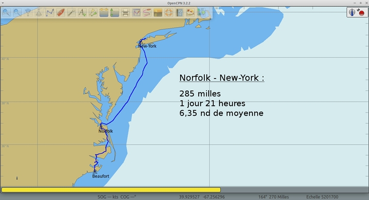 Nous avons eu peu de vent le long des côtes américaines. Il faut faire attention aux violents orages fréquents en fin d’après-midi notamment dans la région de Chesapeake.