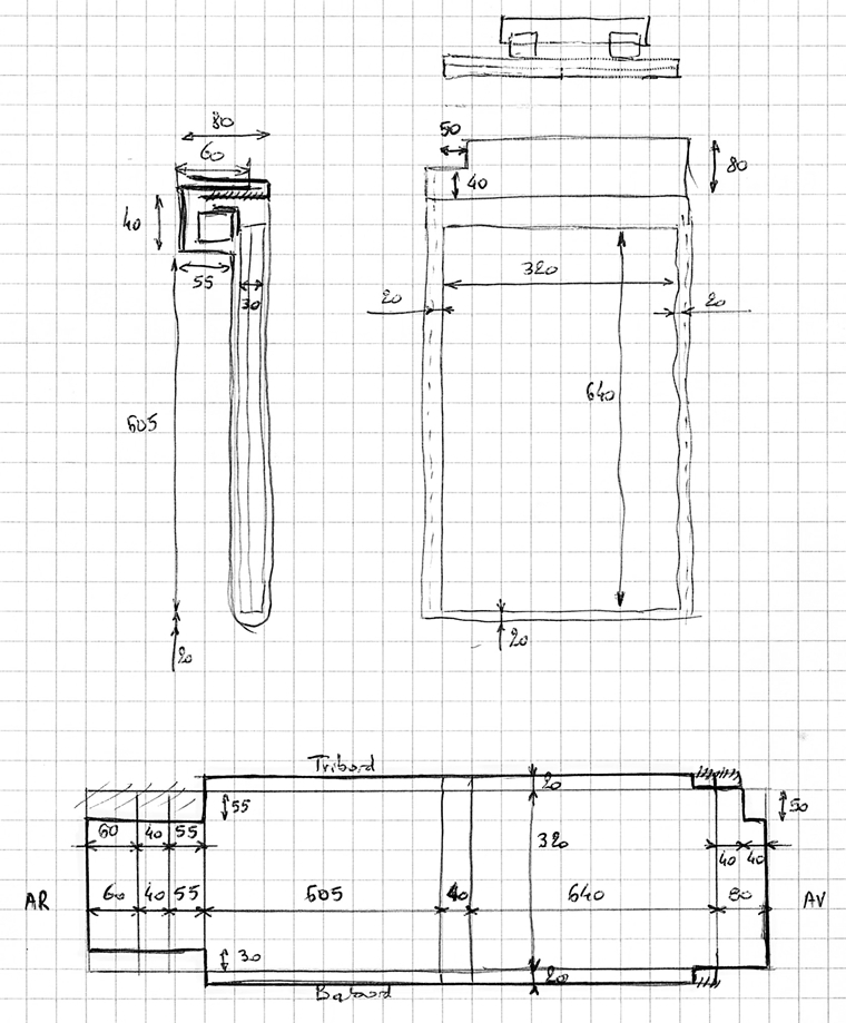 avec un décrochement dans le battant tribord, pour s'ouvrir facilement quand le moteur est en marche avant. Faut dire qu'à l'époque, j'étais en Méditérranée !