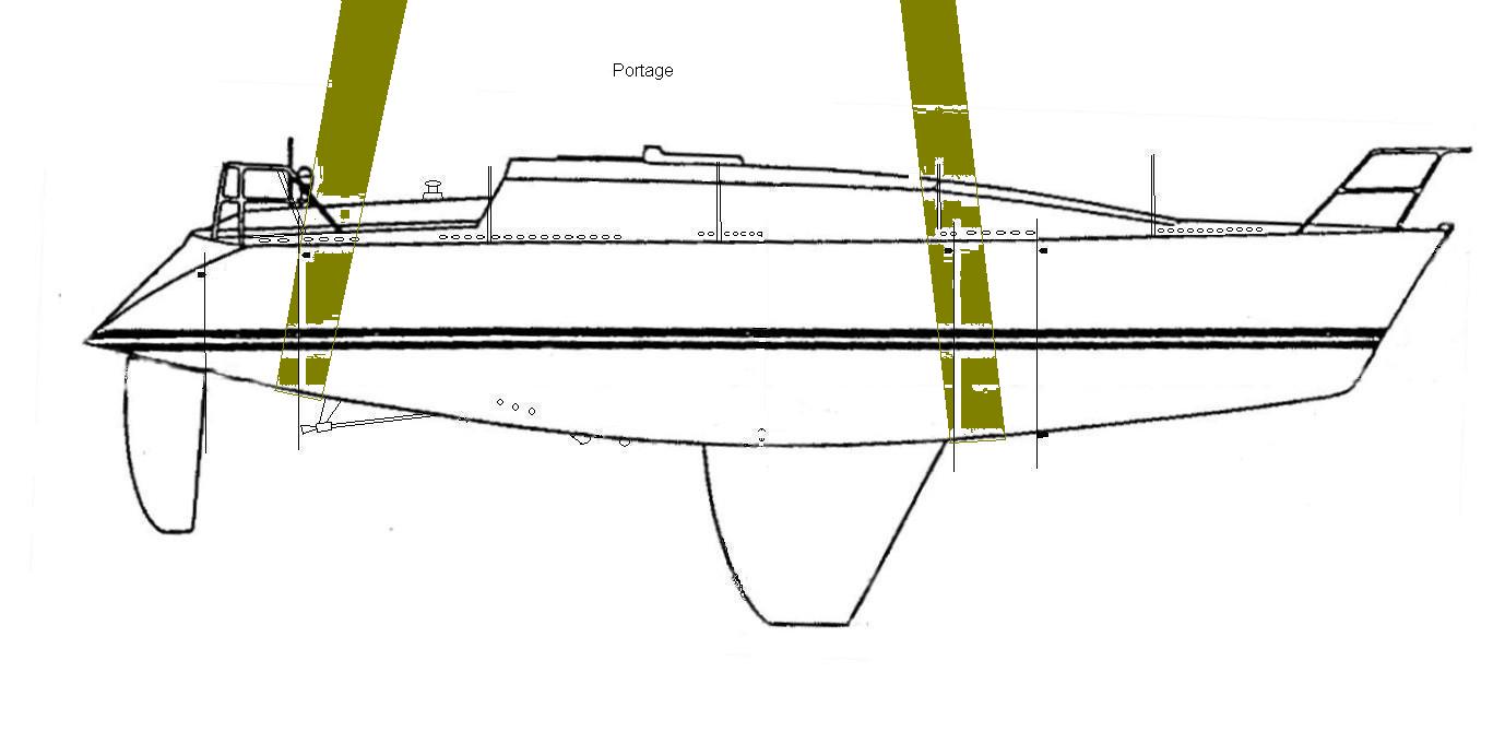 Il est toujours utile et prudent de fournir le plan de grutage de son bateau, au grutier avant qu'il ne passe les sangles pour le sortir de l'eau. Il risquera moins d'accrocher l'hélice, de casser le capteur du loch, ... En plus du plan, on peut bien sur peindre des marques sur le haut de la coque.