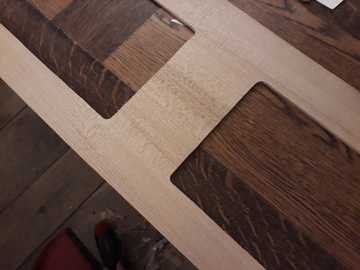 The first pieces of the lining are replaced ... the colour difference is amazing. When you compare the new white to the old white ... it had become brown with years. The light is not good in these photos, the result is better than it looks in the image.
